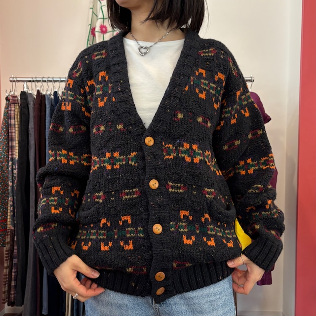 B: used並みの使用感 ※下3つのボタンが種類違い 素材: アクリル100% サイズ: L 着丈62 身幅62 肩幅46.5 袖丈67 model 154cm