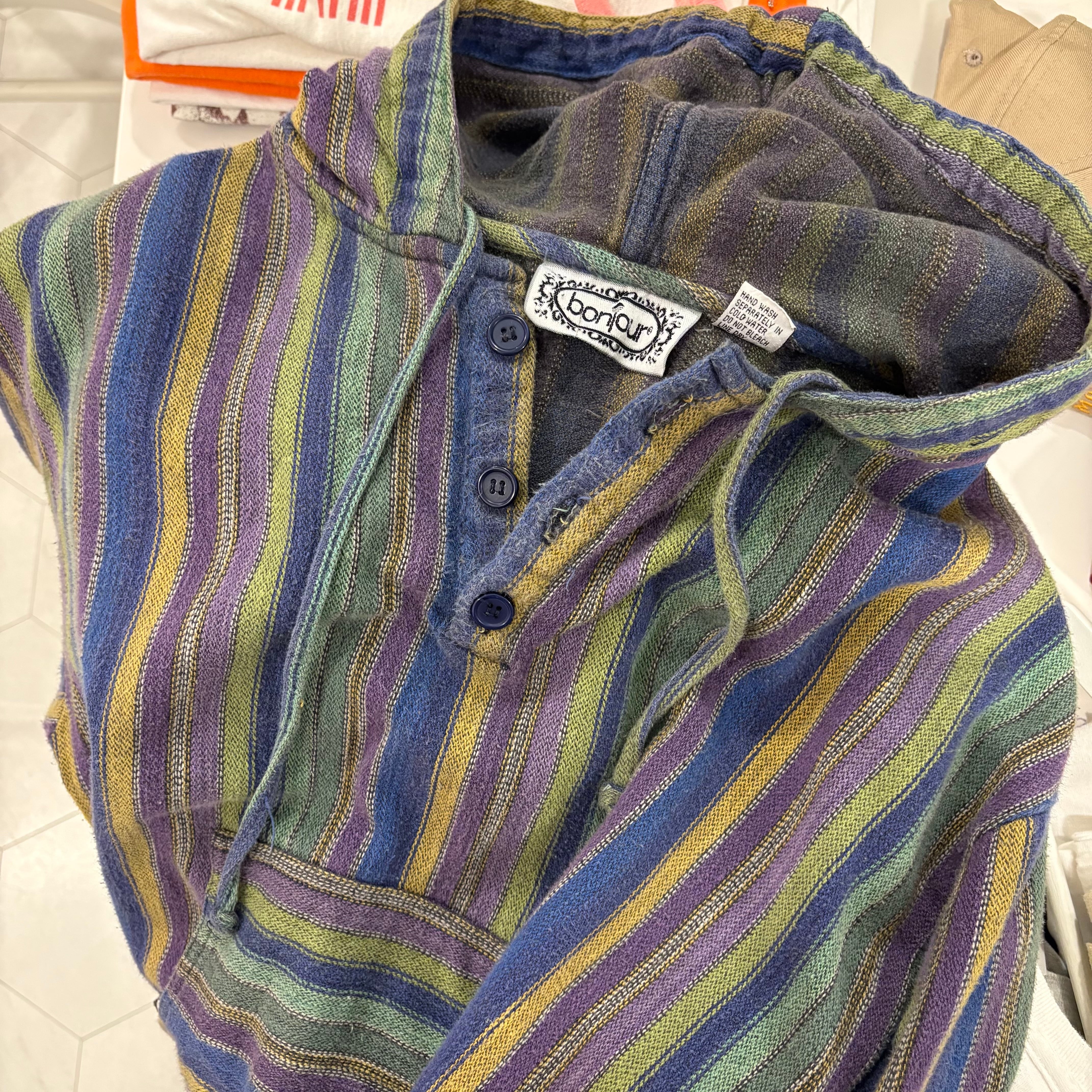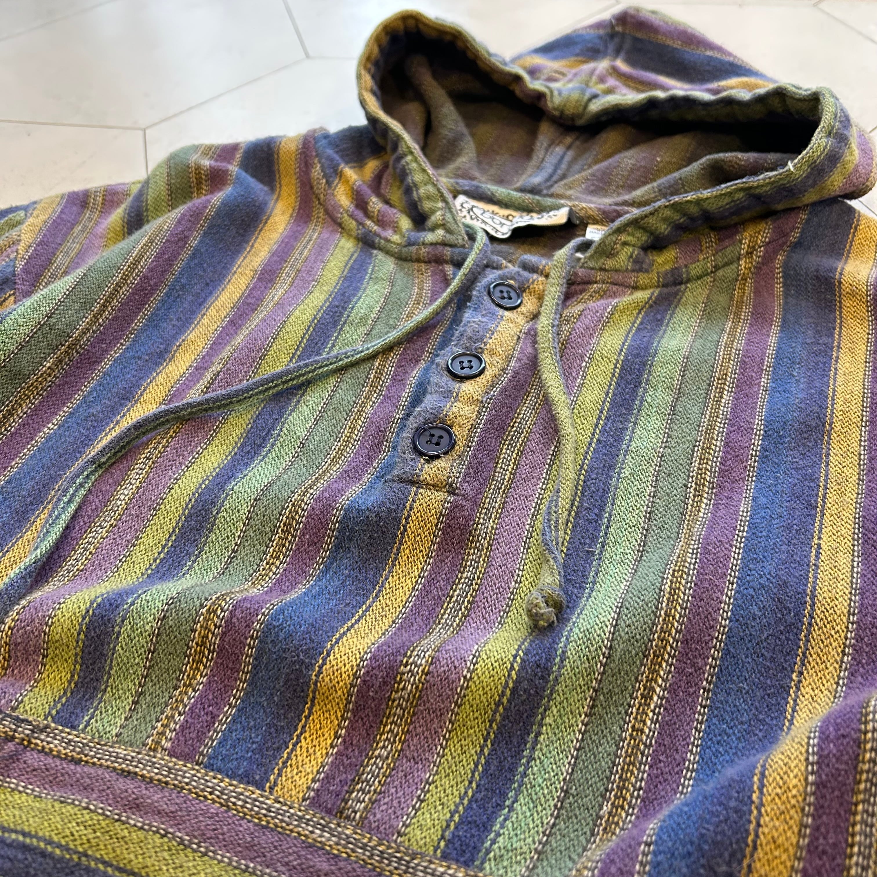 stripe half button hoodie