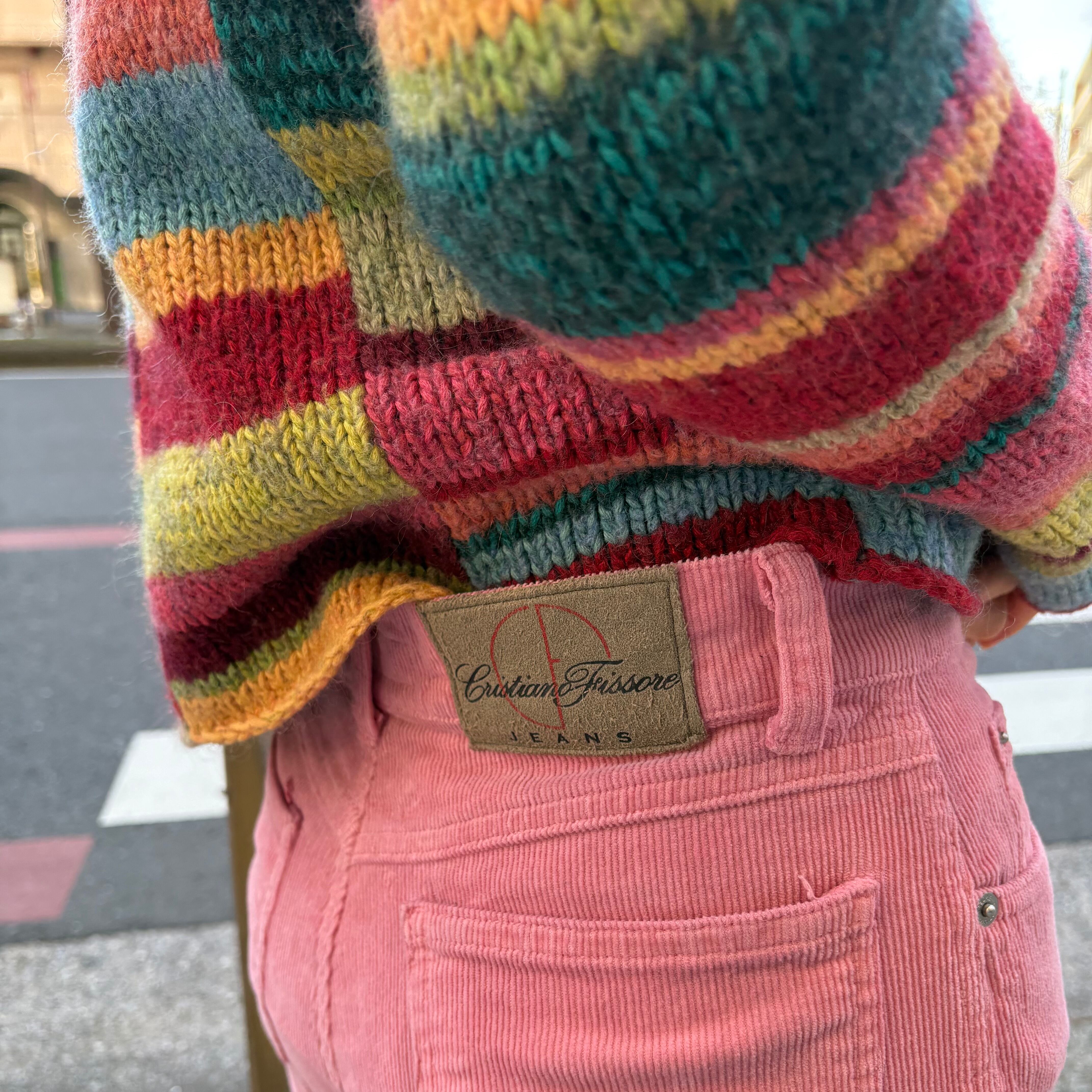 pink corduroy flare pants