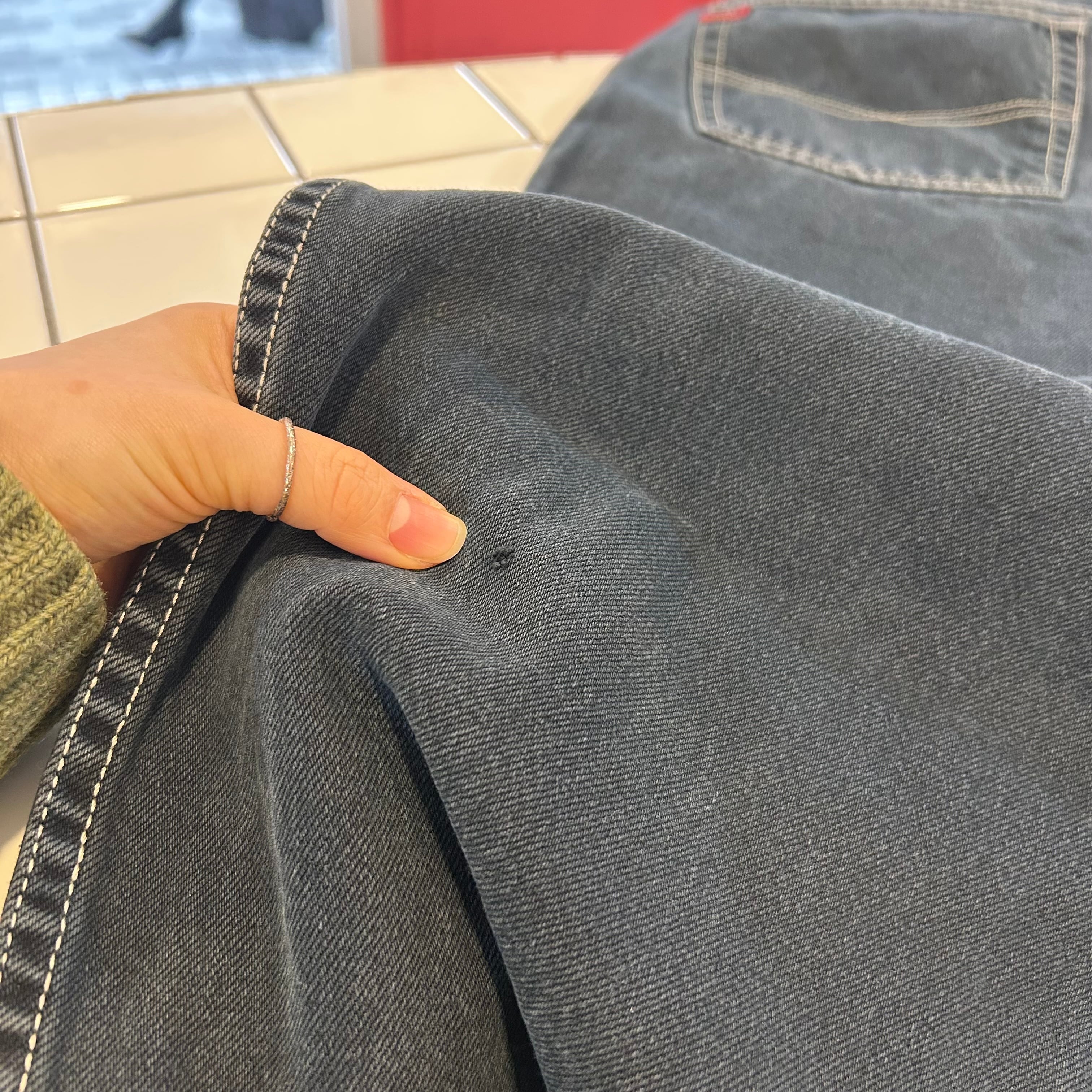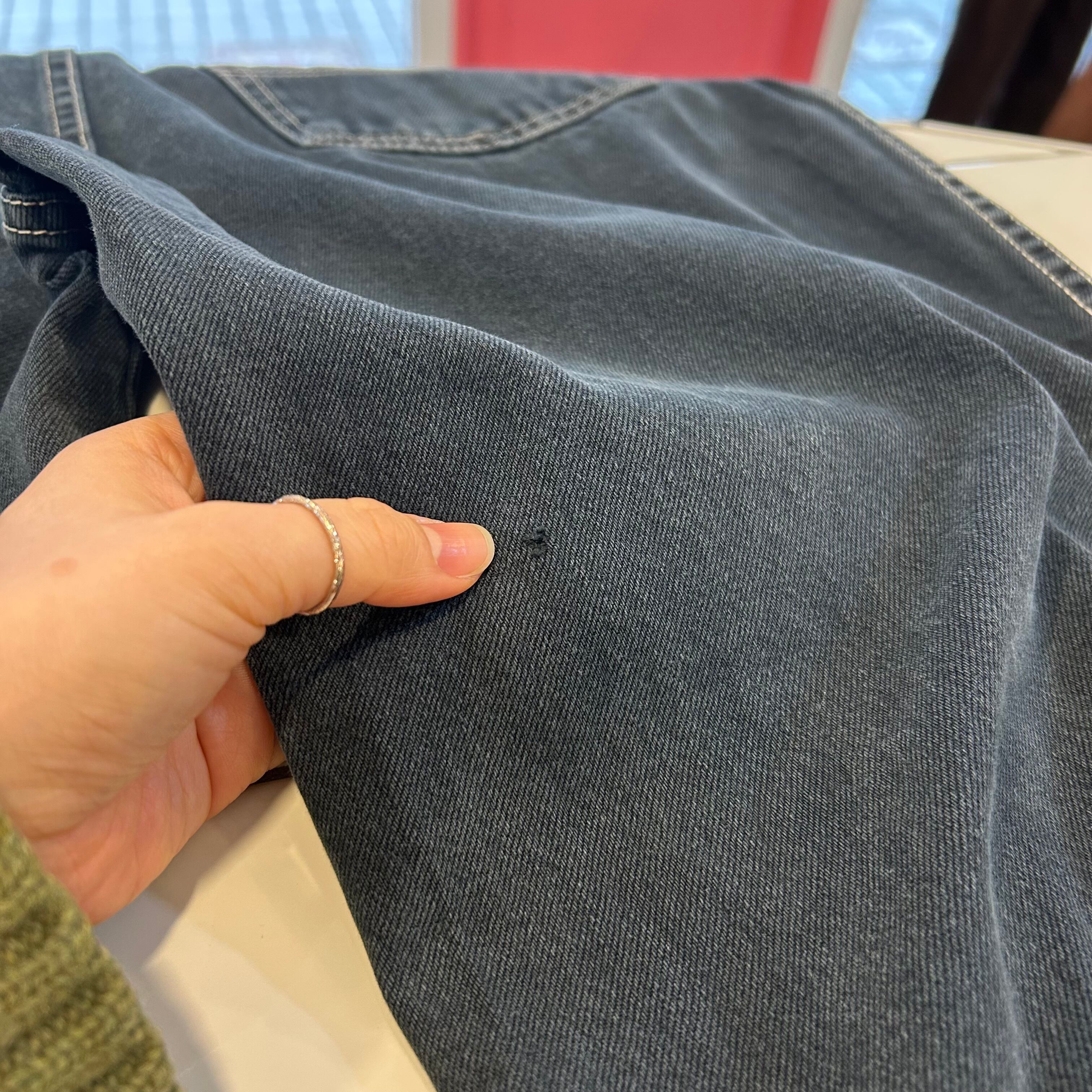 ※背面にピンホールあり。裾にダメージあり。