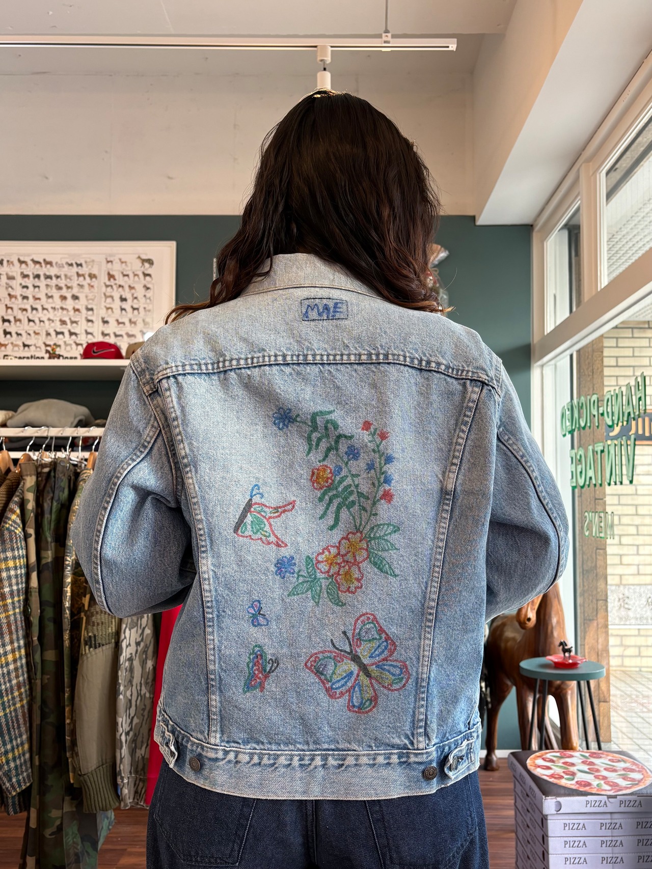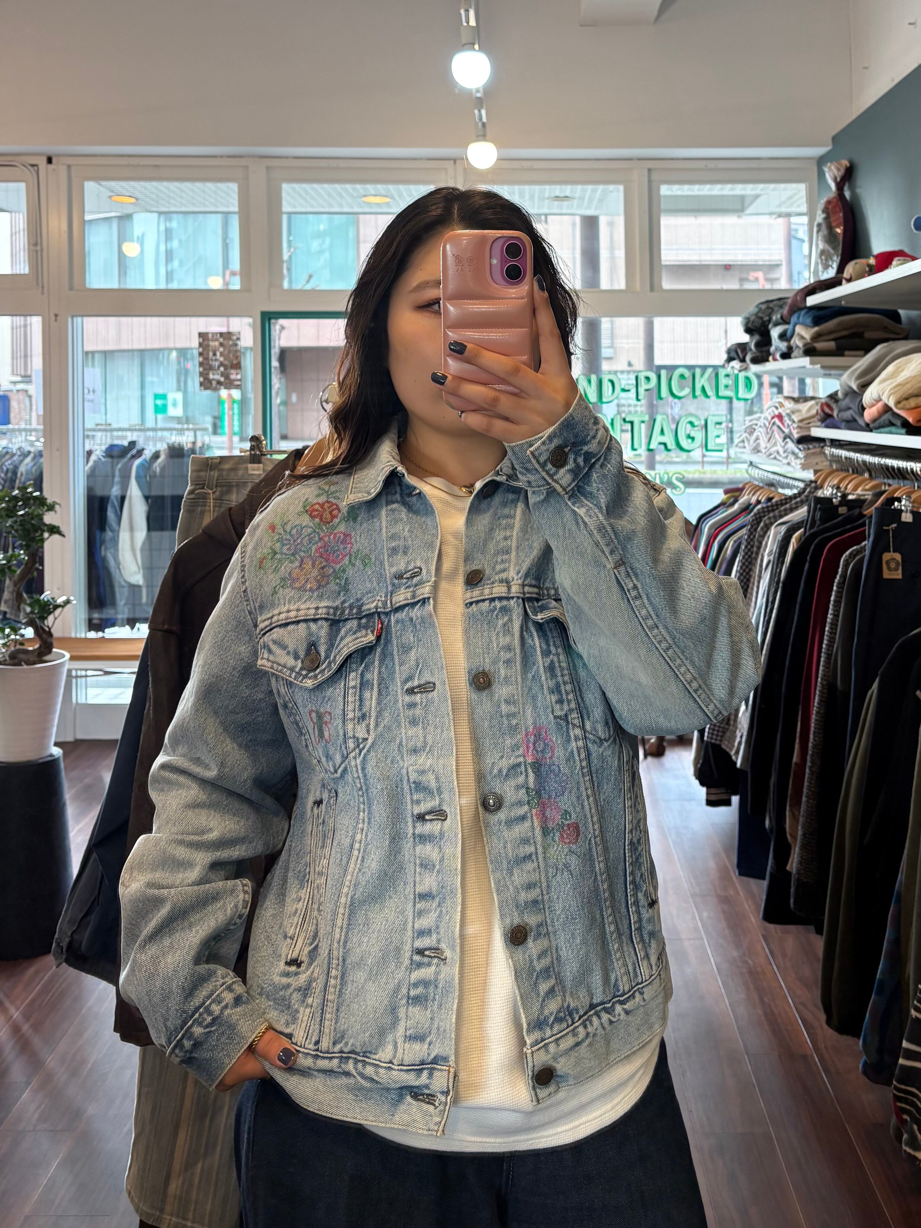 made in USA"Levis"flower paint denim jacket