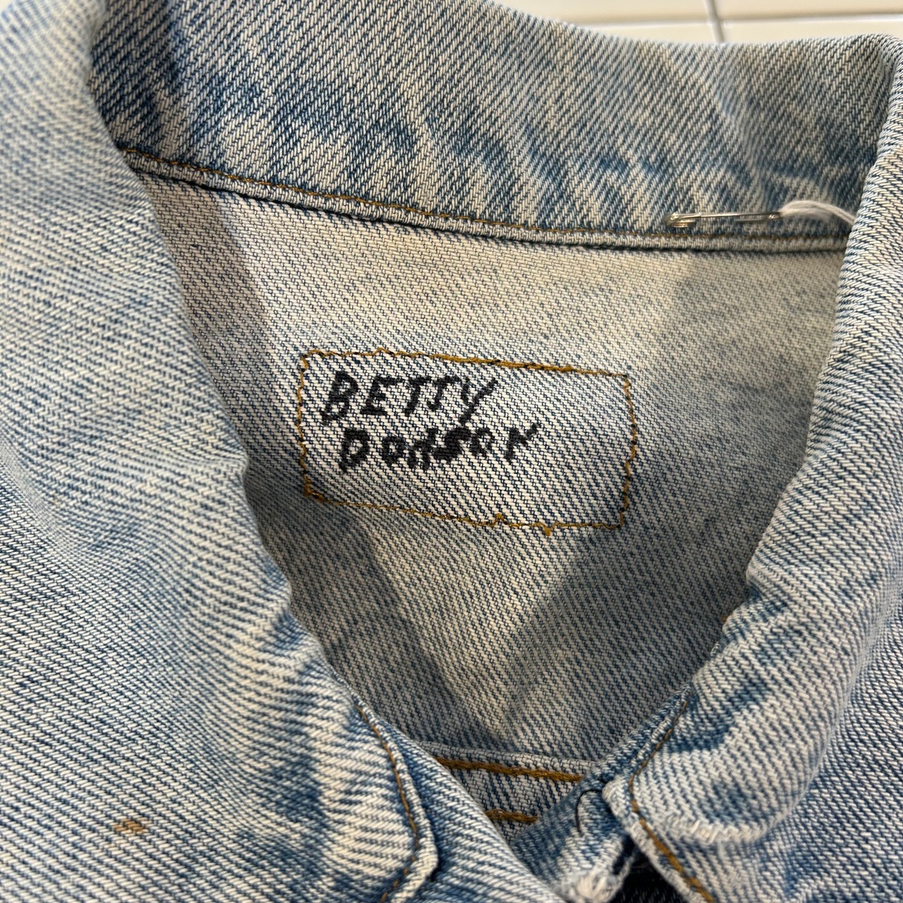 背面左袖に汚れあり。
