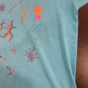 ※左袖、プリント付近にシミあり、首元にダメージあり
