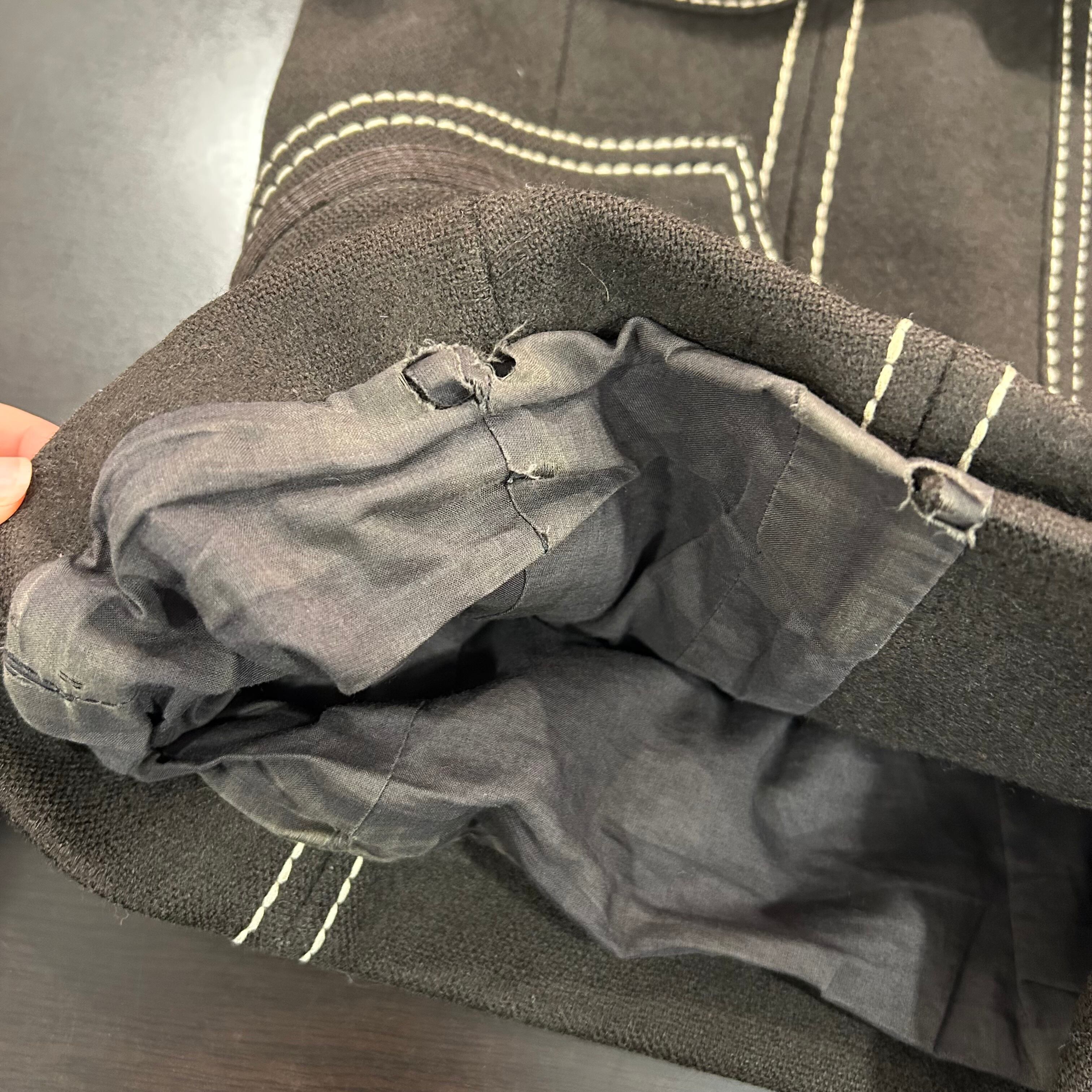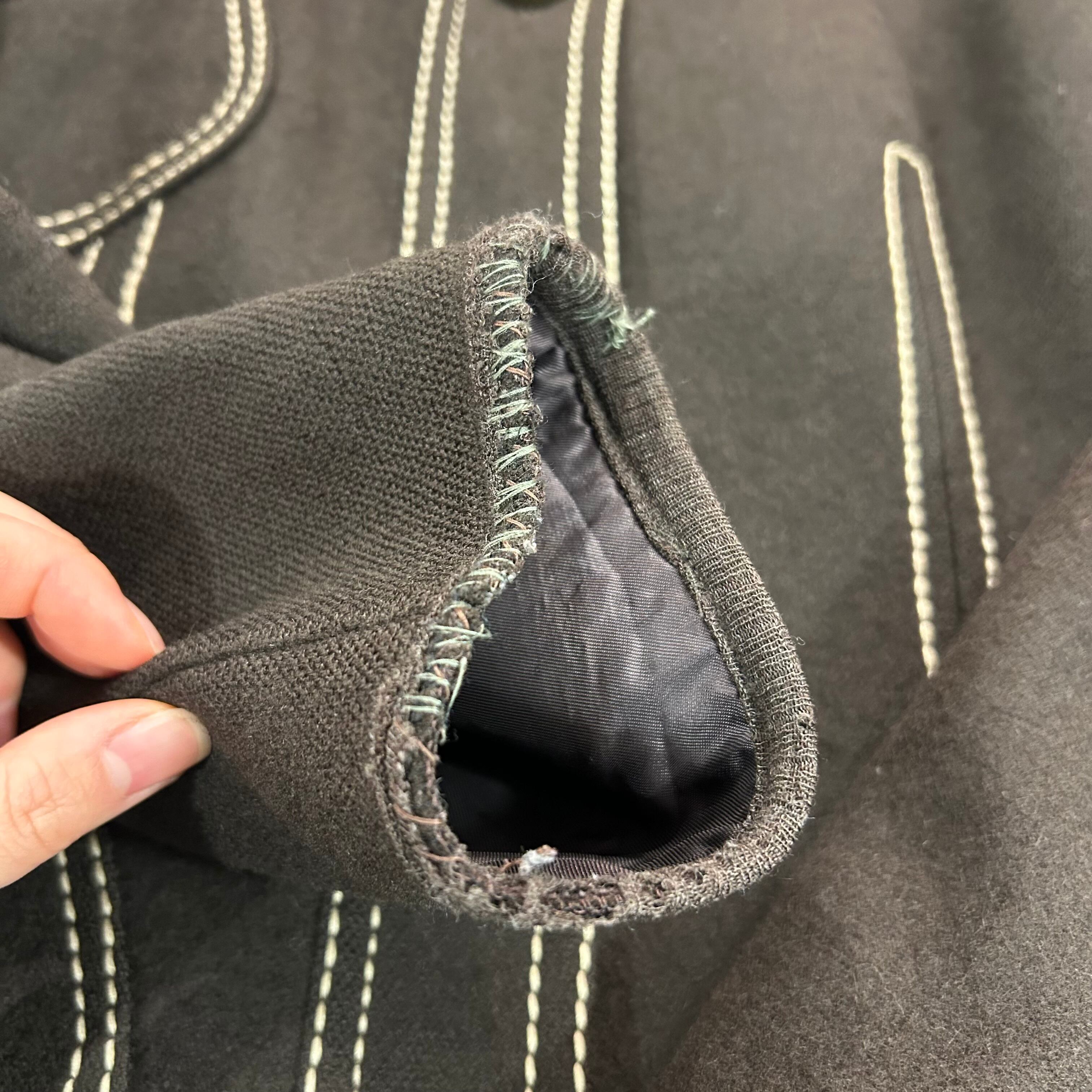 ※袖口ダメージとリペアあり。内側裏地裾ダメージあり。