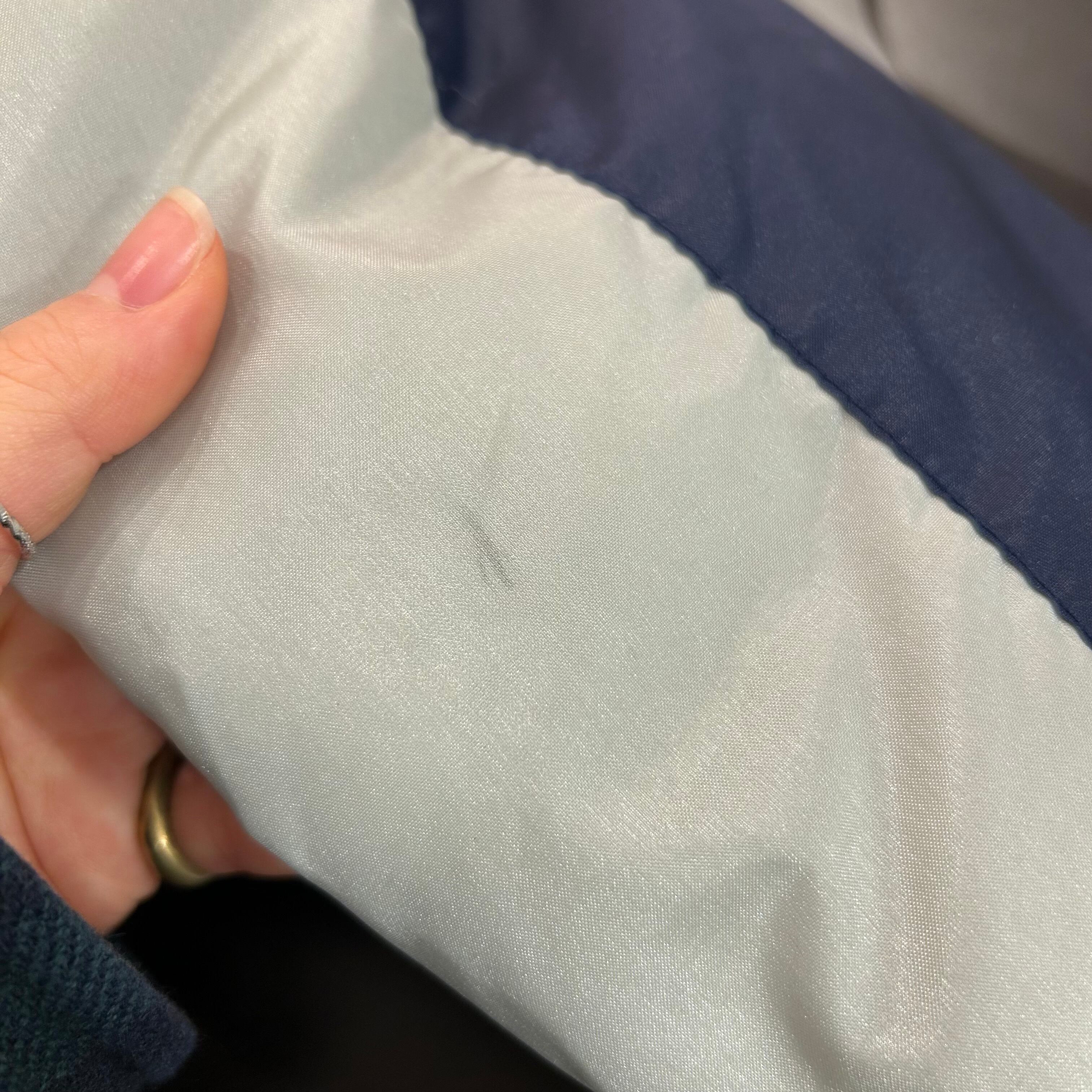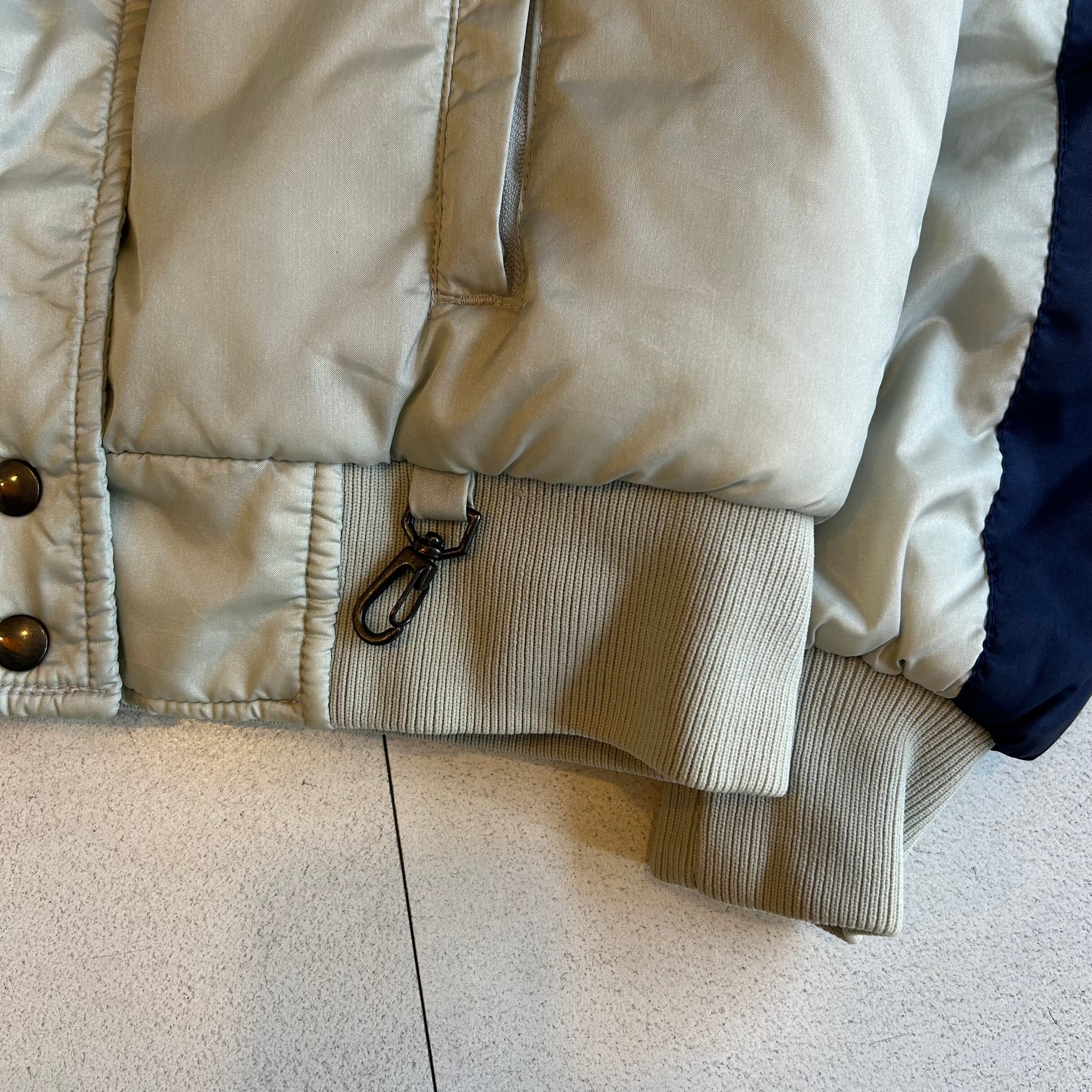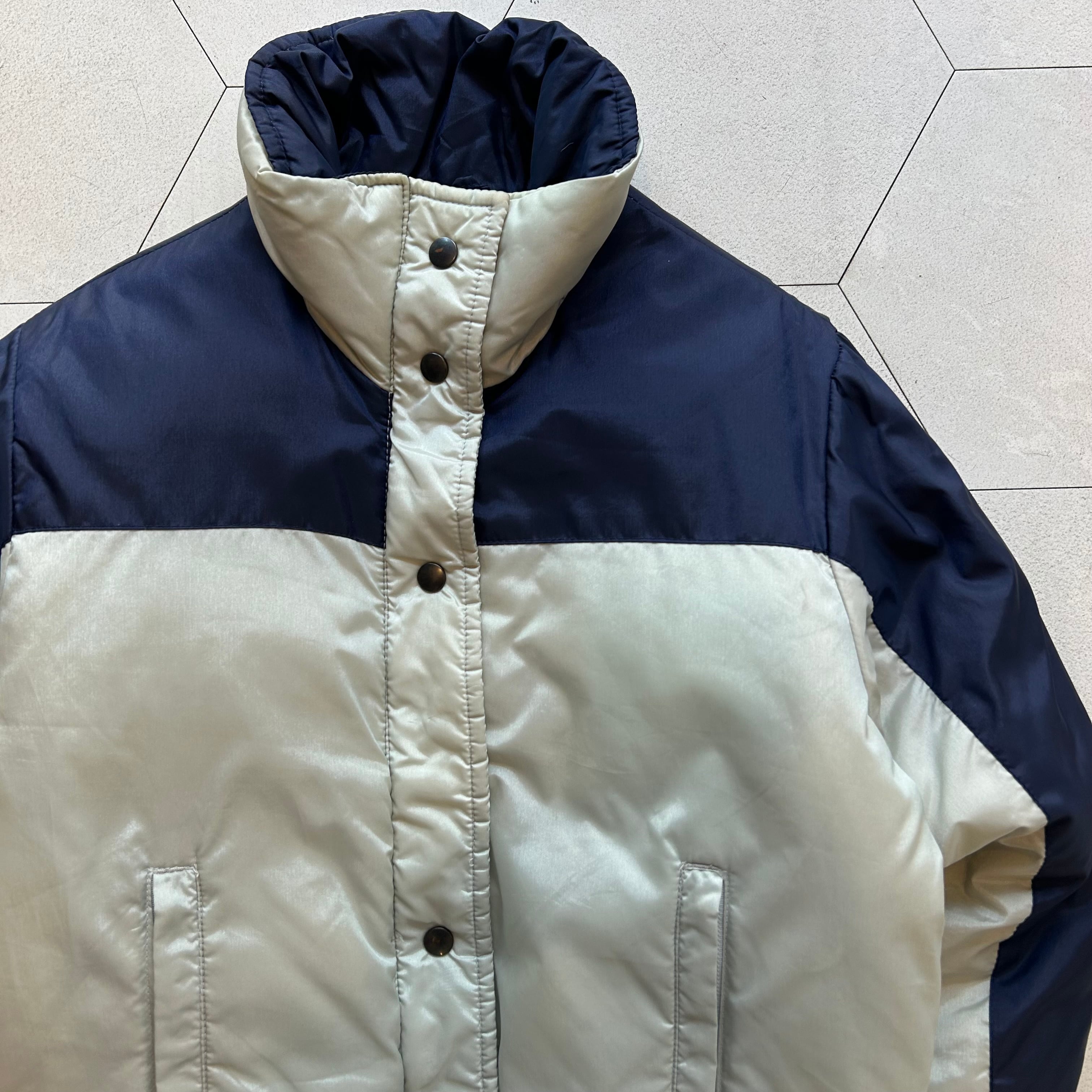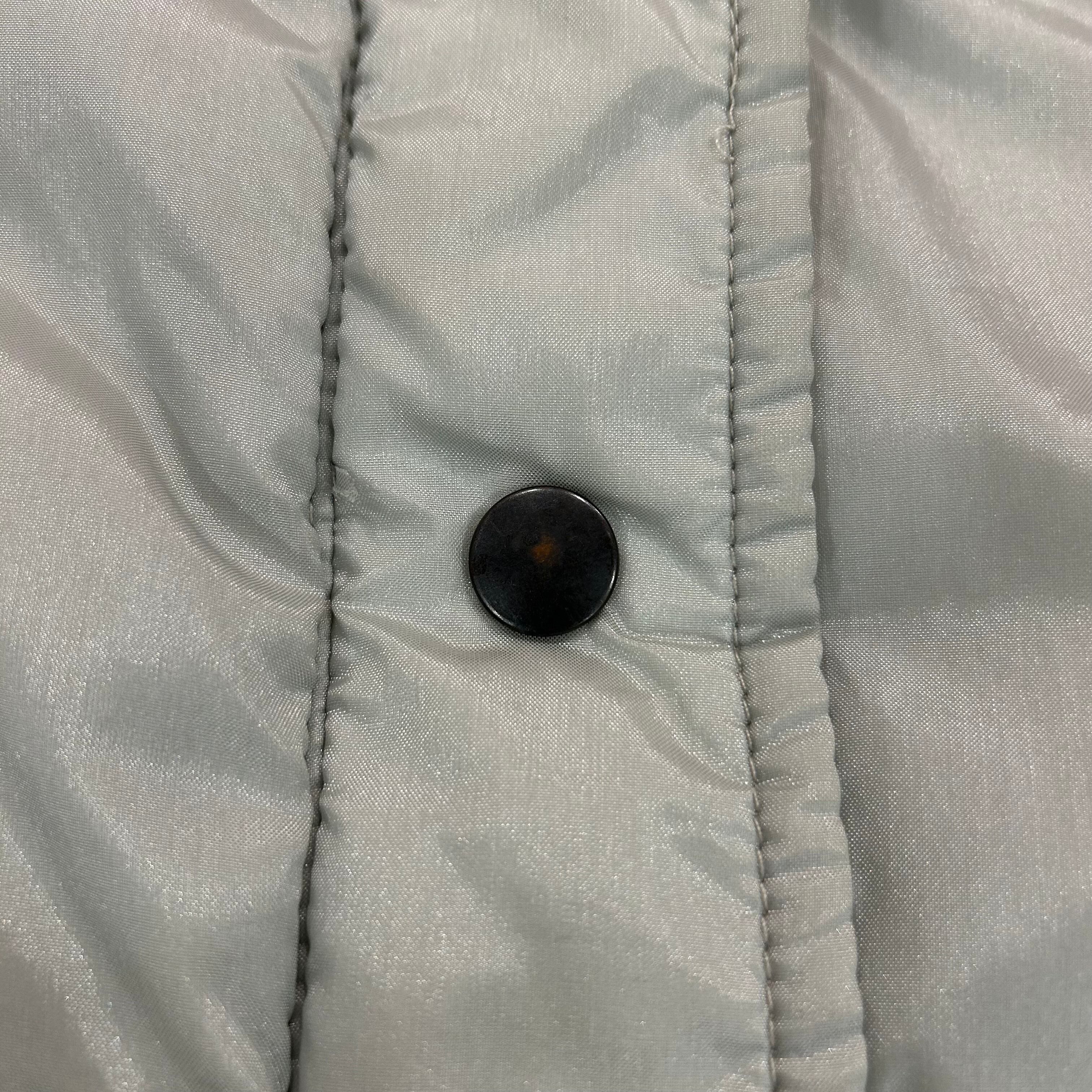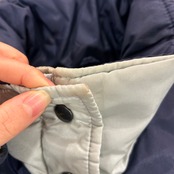 ※襟にシミあり。スナップボタンに傷あり。背面数ヶ所薄いシミあり。